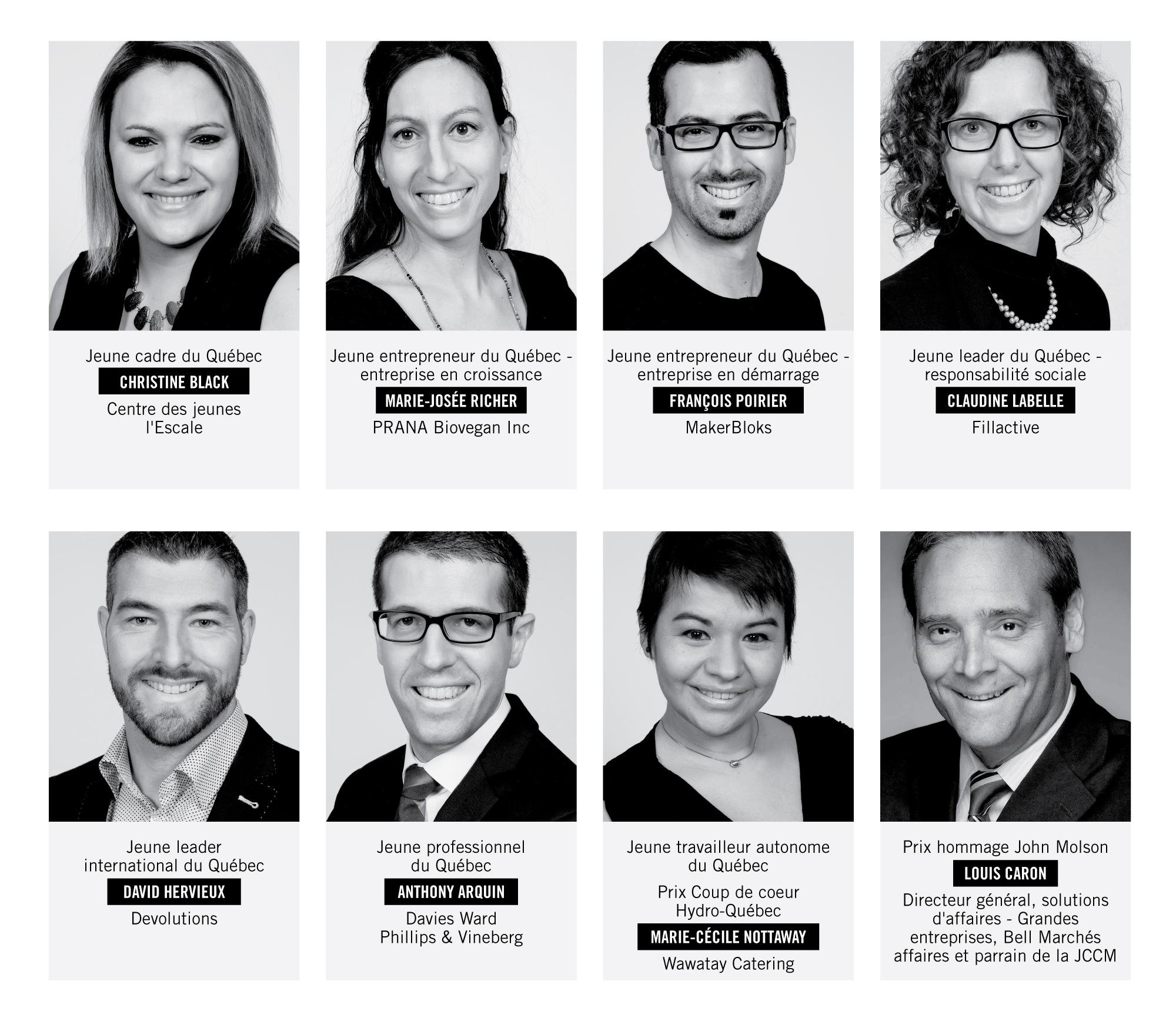 Les lauréats ont été choisis par un jury composé d’une quarantaine de professionnels reconnus du monde des affaires et présidé par M. François Touchette, vice-président régional, Services aux entreprises chez BMO Banque de Montréal : « Encore une fois cette année, la qualité des finalistes était au rendez-vous. En mon nom personnel et au nom des membres du jury, je félicite tous les participants ainsi que les lauréats, qui incarnent un esprit d’innovation, d’audace et de leadership », conclut M. Touchette.